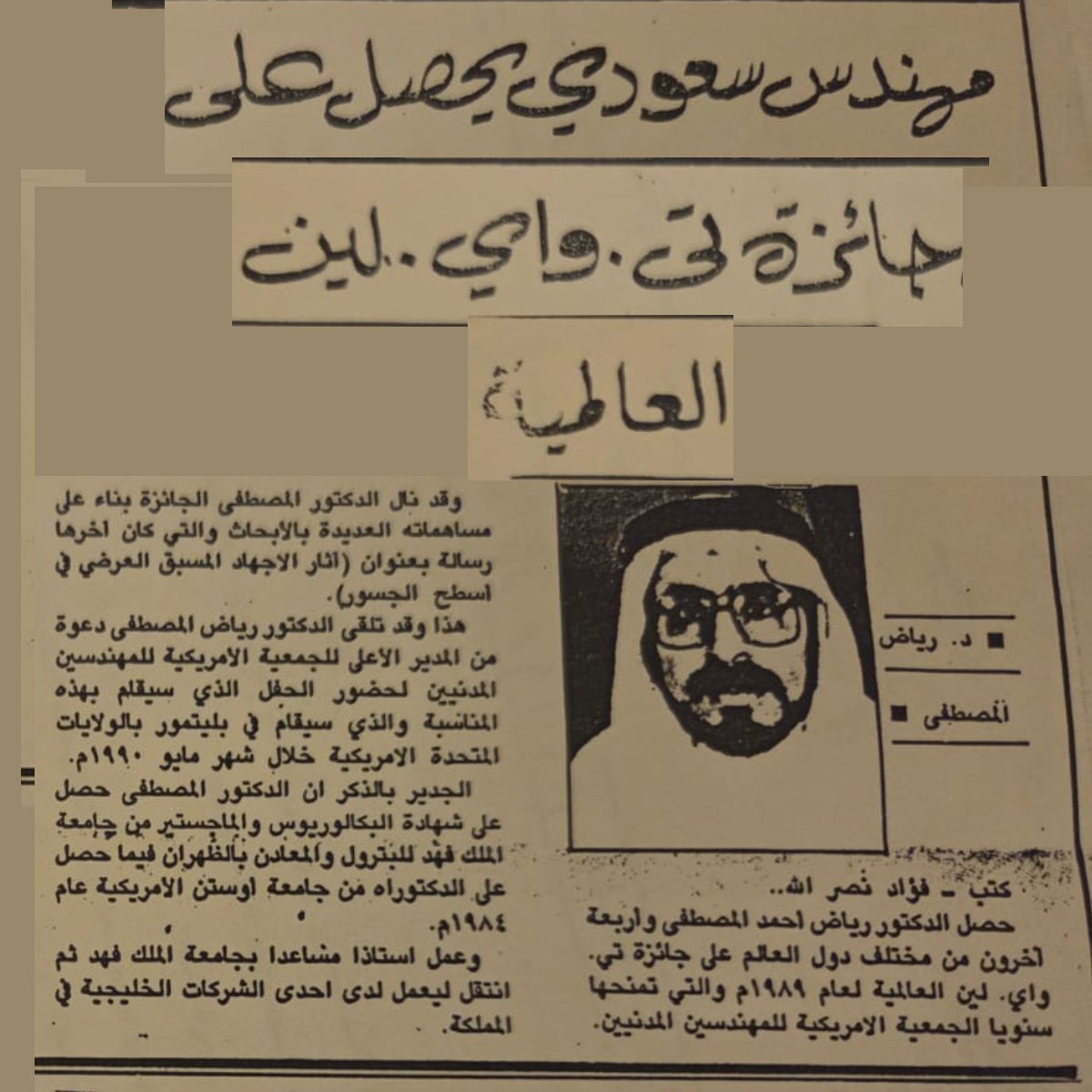 Founder, Dr. Riyadh Almustafa, received the Prince Mohammed Bin Fahd Award of Distinguished Appreciation, honoring his achievement of the prestigious T.Y. Lin Award and his contributions to engineering, education, and community development.